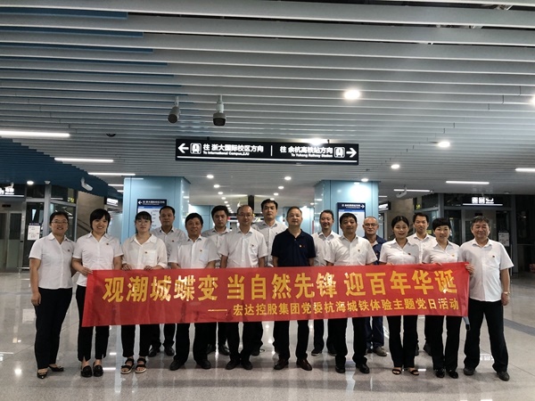 2021年6月19日,在“杭海城鐵”即將通車前夕,中共宏達控股集團黨委委員許建舟帶隊,公司支委以上黨員和優秀共產黨員共20余人,開展了以“觀潮城蝶變 當潮城先鋒 迎百年華誕”為主題的“杭海城鐵”體驗主題黨日活動。