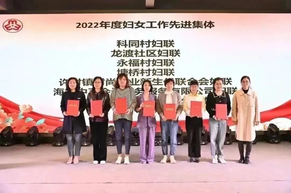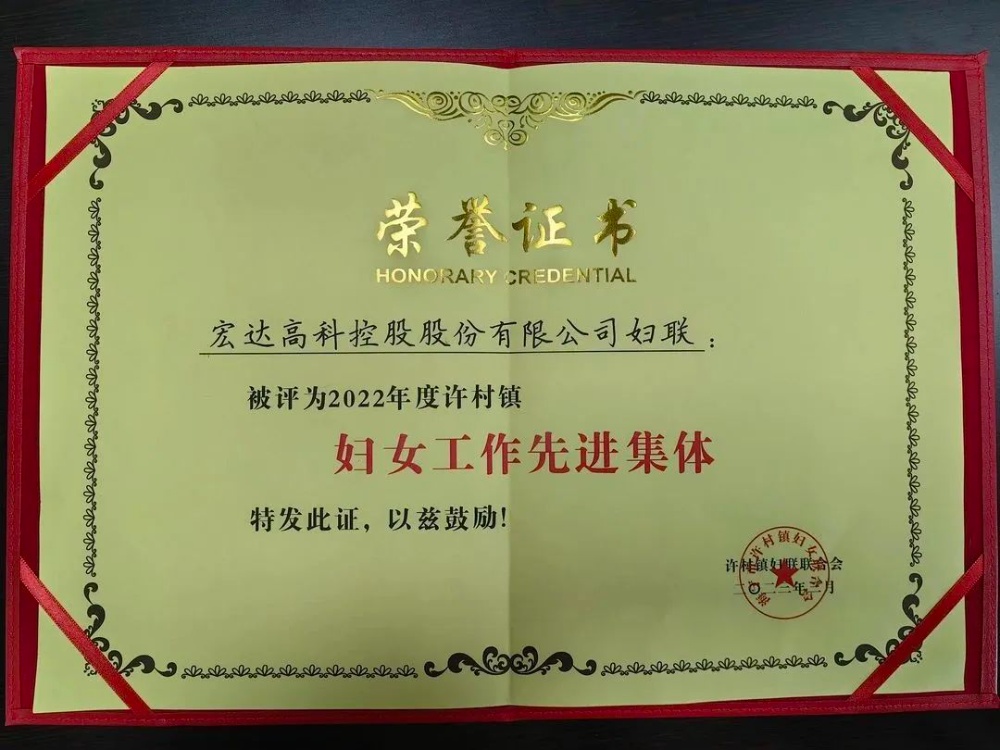 3月6日,許村鎮召開紀念“三八”國際婦女節113周年表彰大會。會上表彰了2022年度婦女工作先進集體和先進個人、2022年度優秀村(社區)婦女組長、2022年度許村鎮“十佳最美文明家庭”、2022年度最美“潮城木蘭”和2022年度許村鎮“優美庭院”示范戶。宏達高科婦聯被評為鎮婦女工作先進集體,公司婦聯主任胡郎秋代表公司上臺領獎。