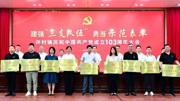 6月28日下午,“建強(qiáng)‘三支隊(duì)伍’ 勇當(dāng)示范表率”許村鎮(zhèn)慶祝中國共產(chǎn)黨成立103周年大會(huì)在許村鎮(zhèn)大會(huì)議室順利召開,宏達(dá)控股集團(tuán)黨委在會(huì)上獲評(píng)許村鎮(zhèn)“先進(jìn)基層黨組織”榮譽(yù)稱號(hào),王鳳娟同志獲評(píng)許村鎮(zhèn)“優(yōu)秀共產(chǎn)黨員”。