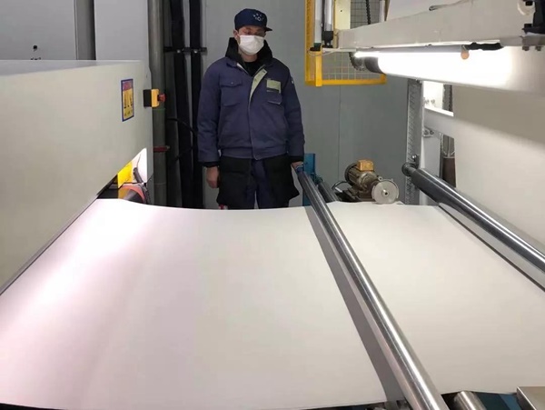復(fù)工當(dāng)天,車間內(nèi),只見員工們戴著口罩在生產(chǎn)線上忙碌。由于生產(chǎn)設(shè)備高度自動(dòng)化,一名員工可以看管5至6臺設(shè)備,因此車間內(nèi)人員并不密集,生產(chǎn)也是井然有序。正在生產(chǎn)的這批汽車頂蓬面料,后天將發(fā)給客戶,以滿足客戶的需求。公司副總經(jīng)理孫云浩表示,公司目前已開啟織造和復(fù)合兩條生產(chǎn)線,等集中供熱啟動(dòng)后,公司染整生產(chǎn)線也將恢復(fù)生產(chǎn);后續(xù)將根據(jù)產(chǎn)業(yè)鏈上游的供應(yīng)情況和下游的客戶需求情況逐步提升產(chǎn)能,爭取在15日全部恢復(fù)生產(chǎn)。