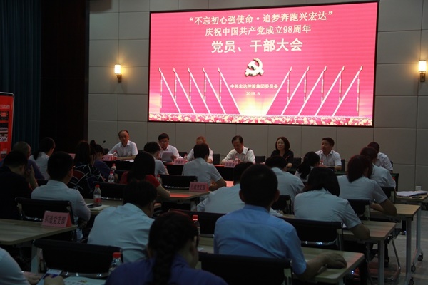 2019年6月29日下午,中共宏達(dá)控股集團(tuán)黨委在宏達(dá)高科控股股份有限公司會議室召開慶祝中國共產(chǎn)黨成立98周年黨員干部大會。大會由黨委委員潘建華同志主持,集團(tuán)黨委書記、董事長沈國甫以及黨委全體成員、集團(tuán)所屬支部全體黨員、入黨積極分子、部門助理以上干部共65人參加。