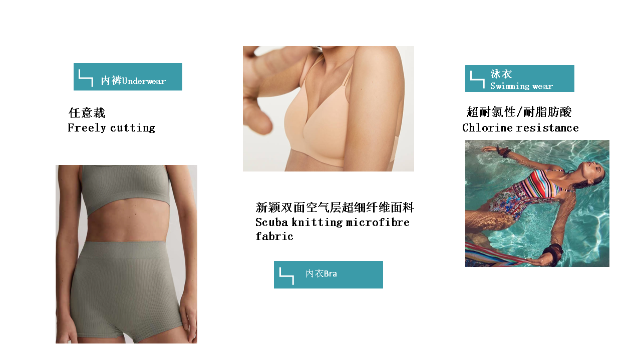 公司創(chuàng)造性的應用進口生產(chǎn)設備,精心采購國際優(yōu)質(zhì)原材料和染 化料,所生產(chǎn)的彈性和尼龍面料制作各種泳衣、潛水服、內(nèi)衣、 文胸、睡衣的理想面料,具有穿著舒適,觸感輕柔、恢復性好易 吸汗、不產(chǎn)生靜電等優(yōu)點,系列產(chǎn)品被評為“浙江省高質(zhì)量科技 產(chǎn)品”。生產(chǎn)的網(wǎng)眼、起絨類經(jīng)編面料,更是運動衣、體操衣、 滑雪衣、球類衣等的上乘面料之選。目前,公司生產(chǎn)的系列面料 已通過Oeko-Tex Standard 100生態(tài)紡織品認證,品質(zhì)達到 國際先進水平,批量配套阿迪達斯等世界著名品牌,遠銷歐美。